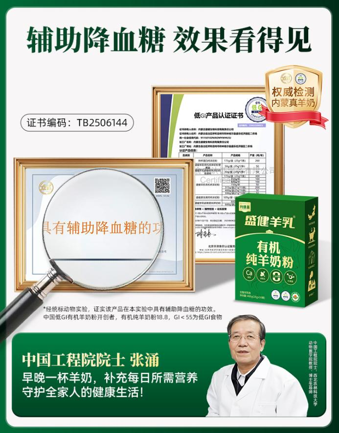 不仅营养丰富,配方科学,盛健羊乳有机纯羊奶粉升级装还同时获得了中国有机产品认证,低GI与低嘌呤三大认证。这意味着,该产品不仅安全性高,且适配需要控制血糖的人群,可以避免进补时引发血糖波动,同时也为关注关节健康、有代谢顾虑的成年人消除了后顾之忧。三重认证是对产品品质的严苛背书,也让成年人在选择时更安心。